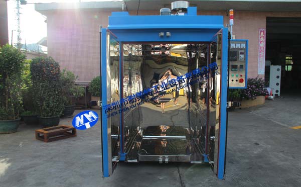 10、內膽材質采用鏡面304#全不銹鋼板,氬弧焊滿焊,防止機臺本身產生灰塵;外箱用2.0mm冷扎板高溫粉體烤漆;